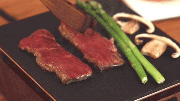 高級感のある樫の木の上に近未来的なグリルプレートは存在感抜群