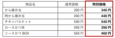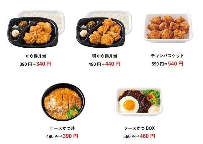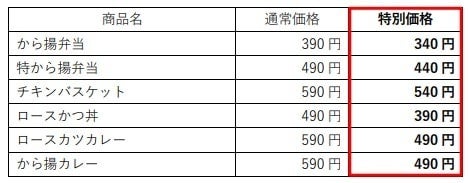 - 『から揚弁当』『ロースかつ丼』など6商品がお得に