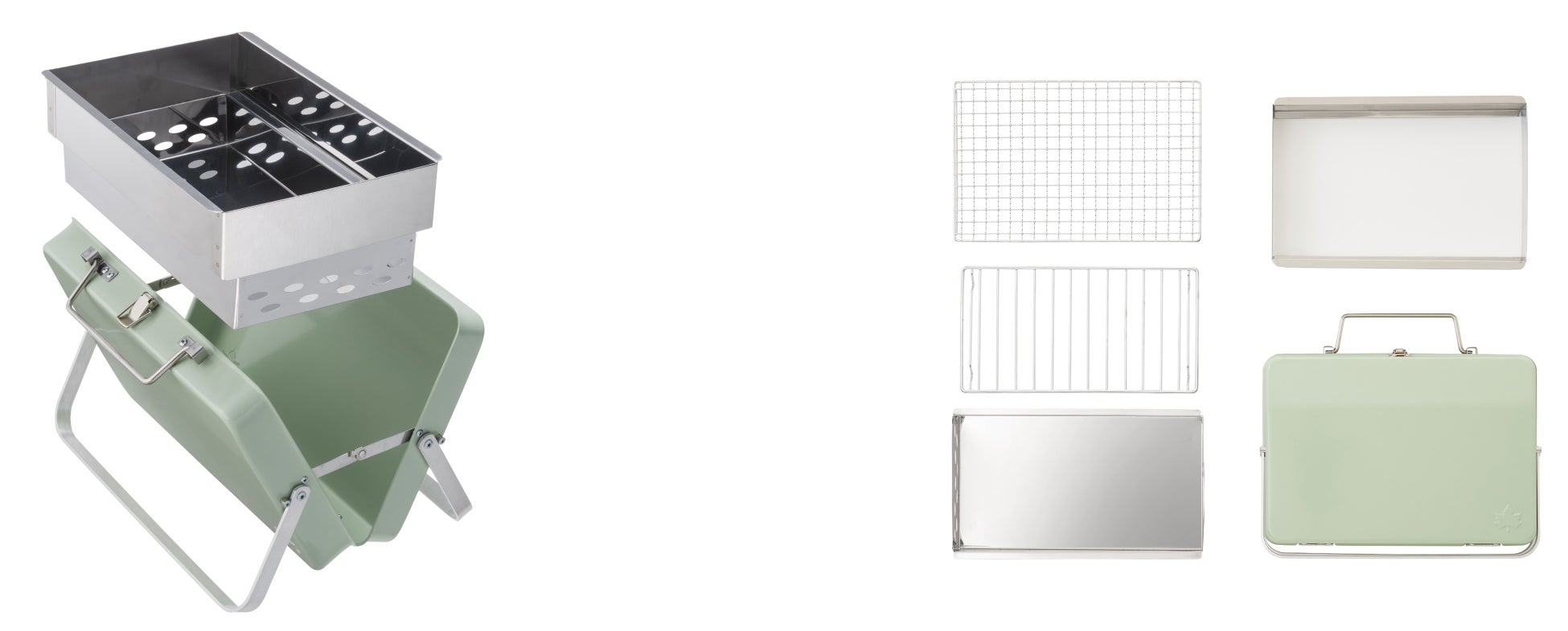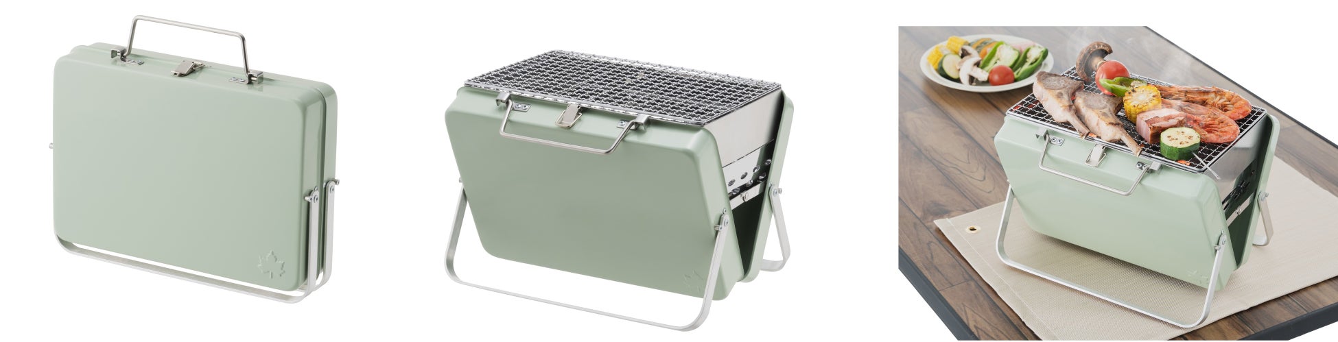 組立て簡単かつスマートな持ち運びを実現する、スタイリッシュなアタッシュケース型卓上グリル「グリルアタッシュS」を、アウトドアライフでぜひともご活用ください。