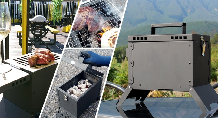 木炭箱、炭焼きグリル、火消しつぼを一体化した機能性と、環境問題にも寄与する「ポータブル火消しつぼグリル『炭火オールラウンドボックス ~燼 [ZIN] ソロ~』」でぜひ、楽しく快適なアウトドアをお楽しみください。
