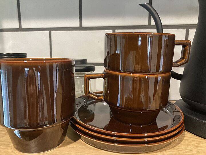 2021aさん宅は、スタイリングされたひとつひとつのアイテムのデザインや質感で魅せる、シンプルだけれど味のある空間です。愛用品のマグカップもまた、そんなアイテムのひとつ。定位置はキッチンのオープンラックなんですね♪背面のサブウェイタイルに映えつつ、周りにあるブラックアイテムとも差の付くブラウンカラーがいい具合です。まずは、お気に入りのポイントを教えてください。