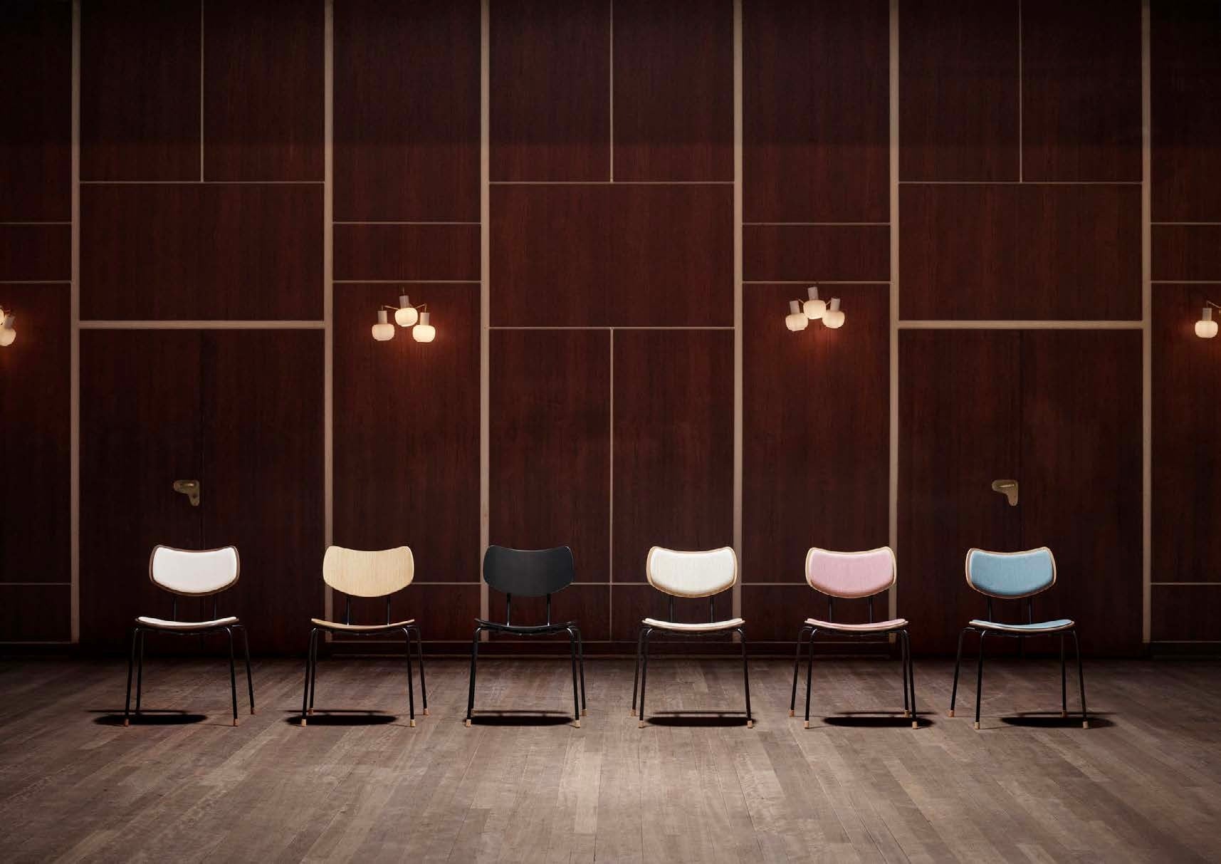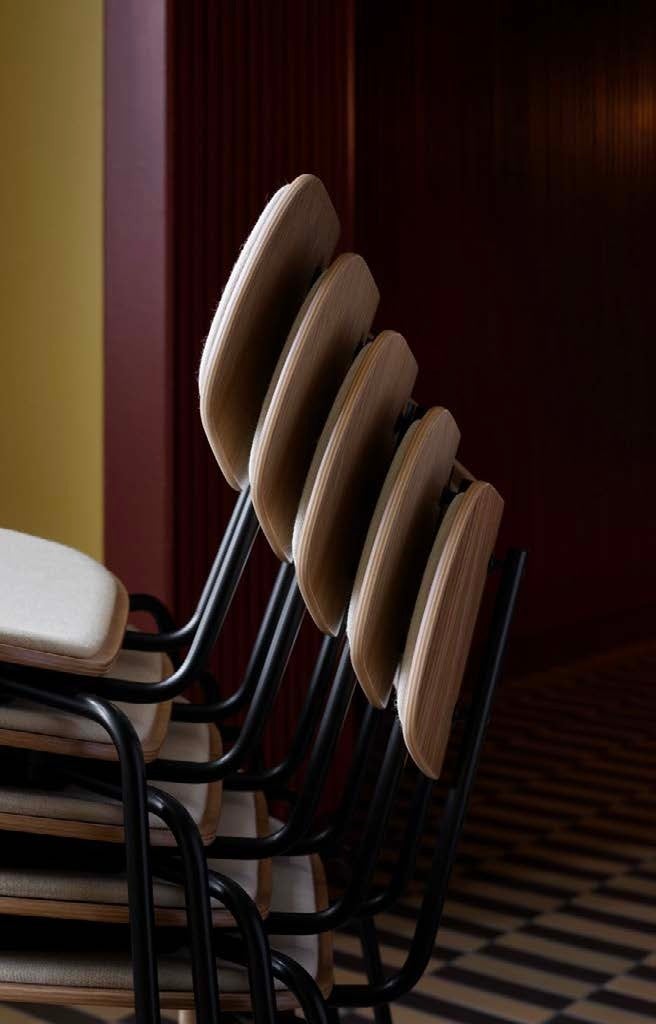 エレガントなディテールのデザインだけでなく、スタッキングできる機能性、張地の選択肢のバラエティ、木製の脚部の仕上げなど、さまざまな用途でご利用いただくことが可能です。