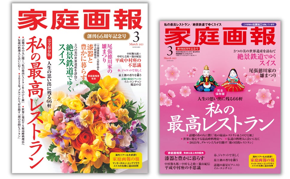 1958 年 2月創刊。毎月1日発売。「夢と美を楽しむ」をテーマに、 時を経ても色褪せない「本物」を追求し、日本の四季、伝統文化、食、おもてなしの心などを美しい写真とともにお届けしています。「家庭画報の旅」をはじめ、家庭画報ショッピングサロン(通販)、イベント事業等も展開しています。 公式HP「家庭画報.com」 URL:https://www.kateigaho.com/