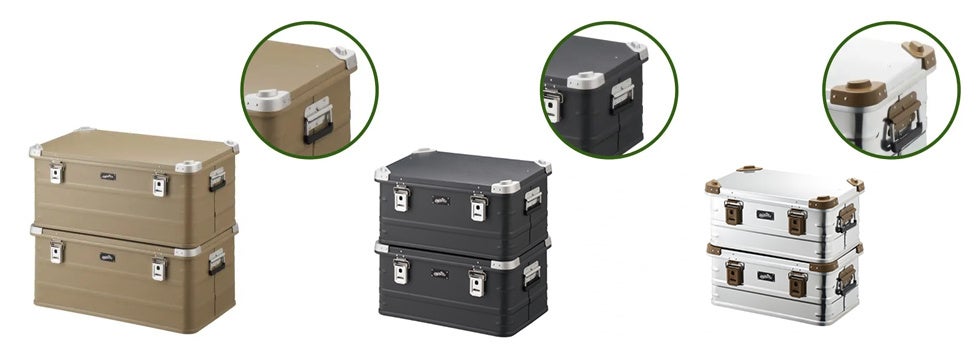 本シリーズは、持ち運びにくいキャンプ用品をスマートに持ち運べる便利なトランクです。厚手のアルミ素材採用で耐久性に優れ、荷物の多いアウトドアシーンで活躍することはもちろん、クラシカルなカラーリングなのでお部屋の収納などにも使えます。