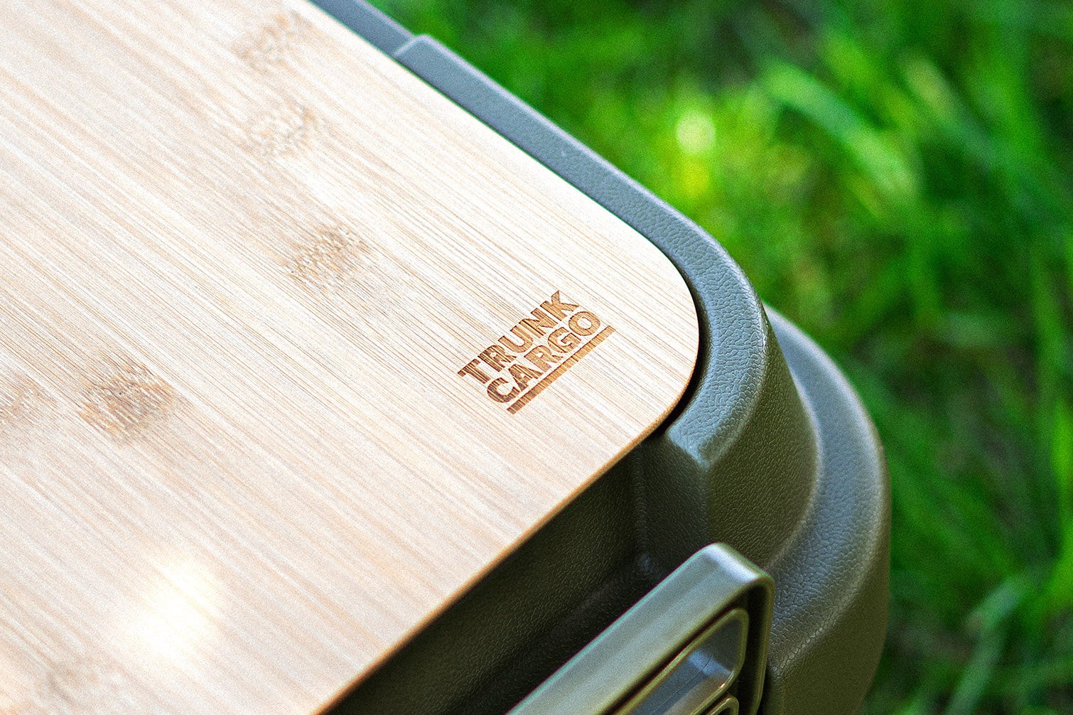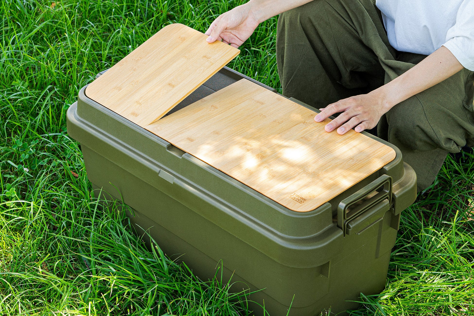 サービス開始後、多くの方が型紙を活用し自作のテーブルやチェアマットなどを制作してくれました。( https://www.trunkcargo.jp/journal/trunkcargotablediy211004/ )さらに雑誌やWebメディア等でもサービスが紹介され多くの反響がありました。今回SNSや展示会で「トランクカーゴとして天板を販売して欲しい」というユーザーの要望を多数いただき、オフィシャルアイテムとして各サイズに合わせた専用のテーブルボードを開発いたしました。トランクカーゴ内にコンパクトに収納ができるので、容器内を圧迫せずアウトドアシーン等で気兼ねなく利用できます。