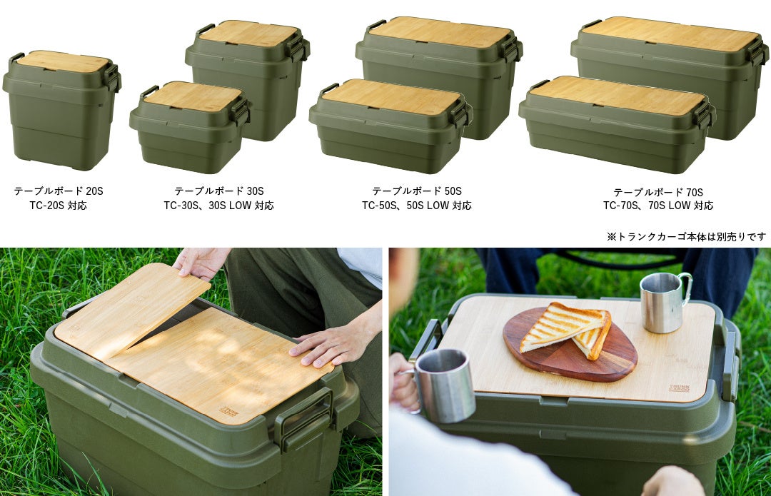 テーブルや椅子など収納ボックスの枠を超えた使い方ができ、多くのキャンパーから支持をされています。今回、テーブル利用として「DIYをせず商品として手に入れたい」というニーズや「オフィシャルアイテムに加えて欲しい」というニーズに応え、オプションアイテム「トランクカーゴ テーブルボード」を発売します。