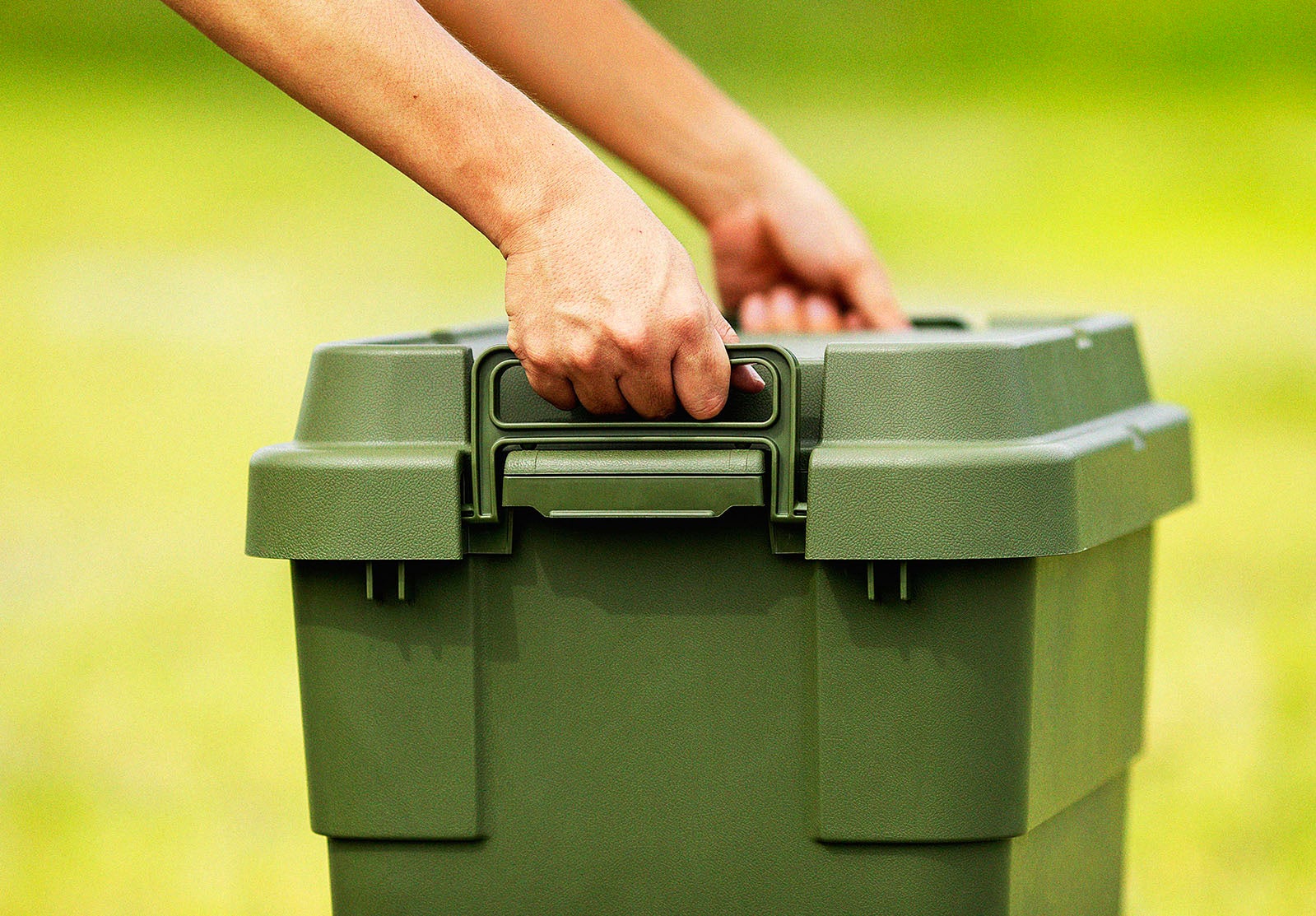 雨やほこりが入りにくいフタ構造で、急な雨でも大事な荷物を守れます。( 完全防水ではありません。)