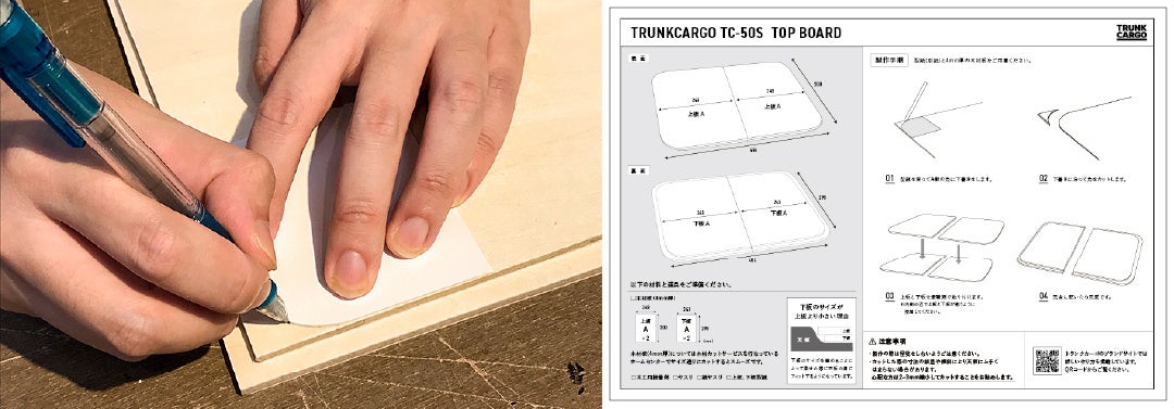 トランクカーゴはブランドサイトにて2021年よりフラットな天板の形状を利用してDIYができる型紙のダウンロードサービスを開始しました。( https://www.trunkcargo.jp/journal/trunkcargotablediy )