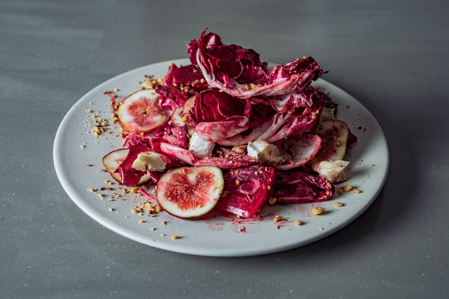 今が旬で程良い甘さの無花果とローストして甘さを引き出したビーツ。そこにあえて苦味のあるトレビスを合わせることで、クセになる苦味と甘さのバランスに仕上げました。ドレッシングはマスタードと「ZENBペーストビーツ」を使用。