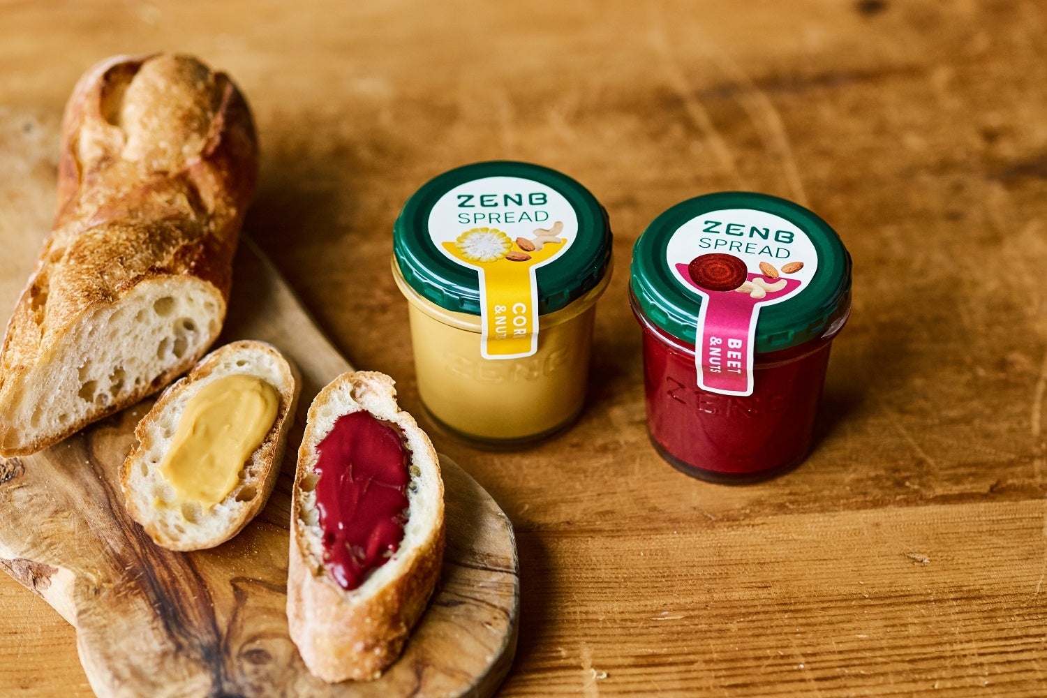普段食べずに捨ててしまう芯や皮までつかった「まるごと野菜」にアーモンドとカシューナッツを加えた濃厚で贅沢なおいしさが楽しめる、新しいパンのお供です。いつものパンにひと塗りするだけで、今までにないおいしさが味わえる、彩り豊かな朝食をお楽しみいただけます。コーン&ナッツ、ビーツ&ナッツの2種