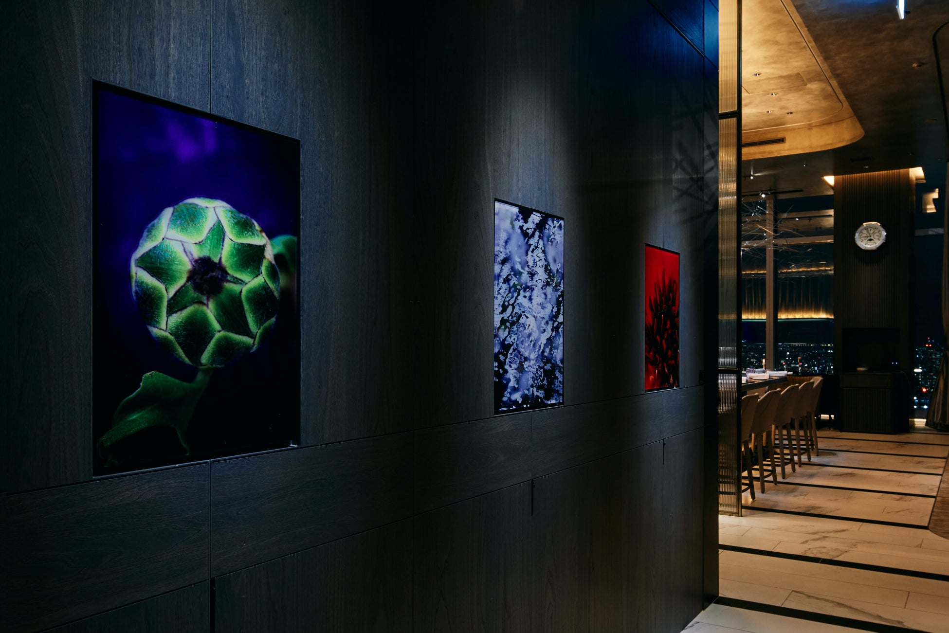 レストラン内のサウンドは、大河内康晴氏が率いるSOUND CoUTURE Inc.のクリエイトチームが「大人の遊び場」「タイムレスラグジュアリー」「コンテンポラリークラシック」をテーマにデザイン。エントランス、バーカウンター、レストラン、VIP Roomと空間ごとに音響が変化し、またVIP RoomやChef’s Roomではこの空間のためだけに特別に作曲されたオリジナルサウンドを使用。さらに、店内には蜷川実花、Studio Sawada Designなどの作品を並べ、空間を彩りました。