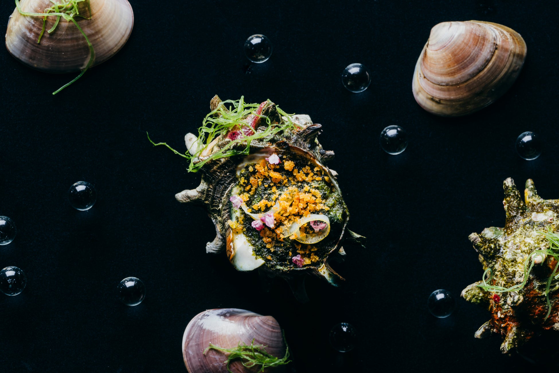 魚醤を使った濃厚な海藻バターソースで磯の香りを引き立